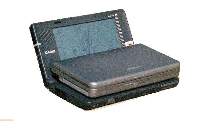 Casio Cassiopeia A-20The first thing we noticed is that the 480x240 screen--standard to all first generation CE devices except those from HP--is gone. Instead, the A-20 has a wider 640x240 LCD. We much prefer this configuration and are glad to see that it appears to have become the new standard for HPCs. The second impression is that the A-20 has a sleeker, more elegant appearance than any of the first generation devices, and that it somehow looks more grown up. However, in terms of size, the new unit is just as small and handy. The larger screen makes it a bit wider, but the A-20 is actually thinner than the A-10/11. The A-20's keyboard is noticeably improved. Its QWERTY layout now measures 65% of a standard keyboard instead of the A-10's 59%. Individual keys are a bit wider than before and they feel much better to the touch. The looseness of the A-10 keys is gone, and the keys now offer precise tactile feedback. Casio also added a special function key, labeled Fn, that is used to provide direct access to the units built-in applications. Impressive performance Things have changed under the hood as well. Whereas the A-10 series used a 40Mhz version of Hitachis SH-3 32-bit RISC processor, the A-20's is running at 80MHz. The new chip, in conjunction with Windows CE 2.0 improvements, provides a much appreciated performance boost. The A-10's performance was unimpressive even compared to its first generation competitors, but the A-20 feels nimble and responsive. It raced through the PCM scroll test in just 18 seconds, almost three times faster than the A-10, and also two seconds faster than the first generation champ, the Velo-1. As of this writing, the Cassiopeia A-20 is the fastest HPC device we've tested. ![]() The Casio Cassiopeia A-20: a sleek, fast, professional tool. (Click on the graphic for a larger image. -35kb) What else is new and