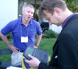 Ken Landau of Landware was showing off his new Money Magazine Financial Assistant, as well as Pocket Quicken, Zagat, and Wine Enthusiast Guide. It's always good to see Ken at these shows. Like me and many other Palm OS regulars, he loves the spirit of camaraderie that surrounds the Palm community; it's a spirit that shines through him particularly brightly.