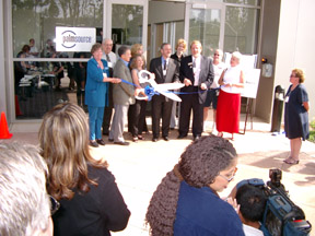 Following the press conference was the ribbon cutting ceremony, organized by the commanding and entertaining Suzi Blackman, President and CEO of the Sunnyvale Chamber of Commerce. David Nagel dutifully held the big wooden ceremonial scissors the entire time as Mrs. Blackman kept us all in line. Impromptu speeches were given and the ribbon was cut to well-orchestrated cheers.